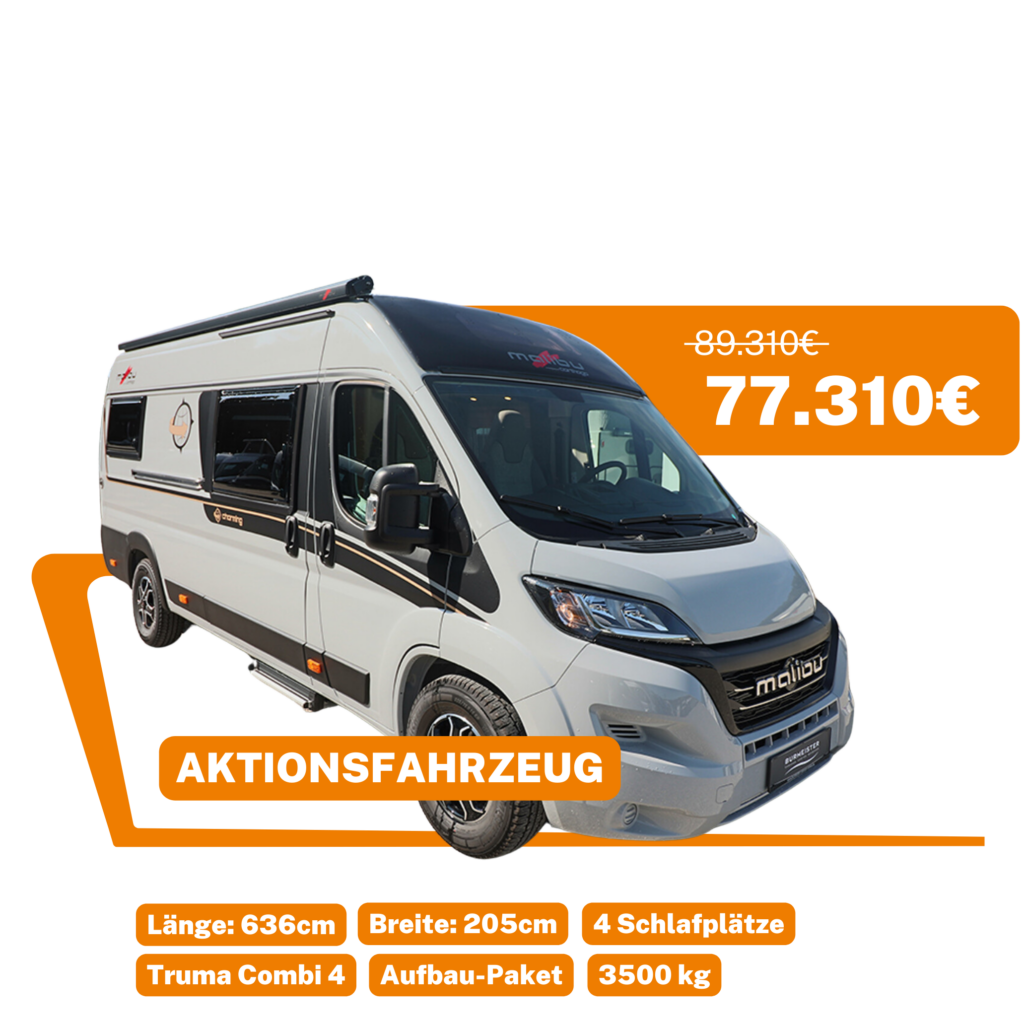 Profitieren Sie jetzt von der Malibu x Burmeister Aktion und sparen Sie 12.000 € auf jedes Malibu-Fahrzeug (ausgenommen Modelljahr 2025). Besuchen Sie uns vor Ort und erleben Sie Ihr Wunschfahrzeug hautnah – nur für kurze Zeit.