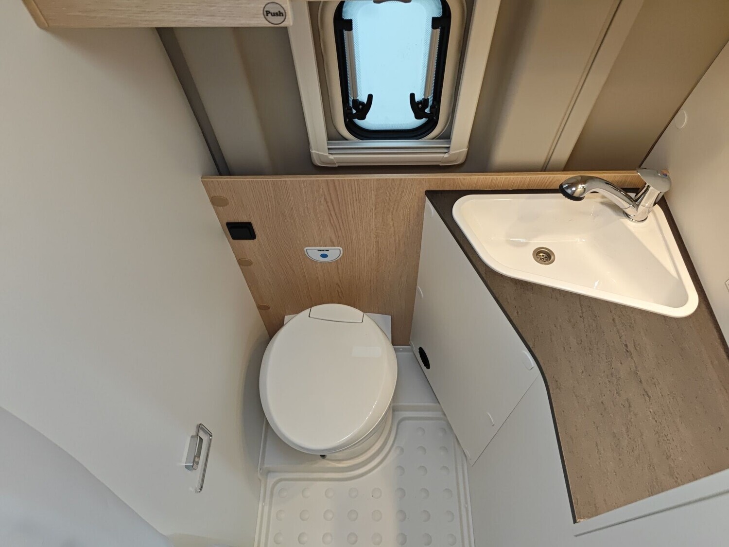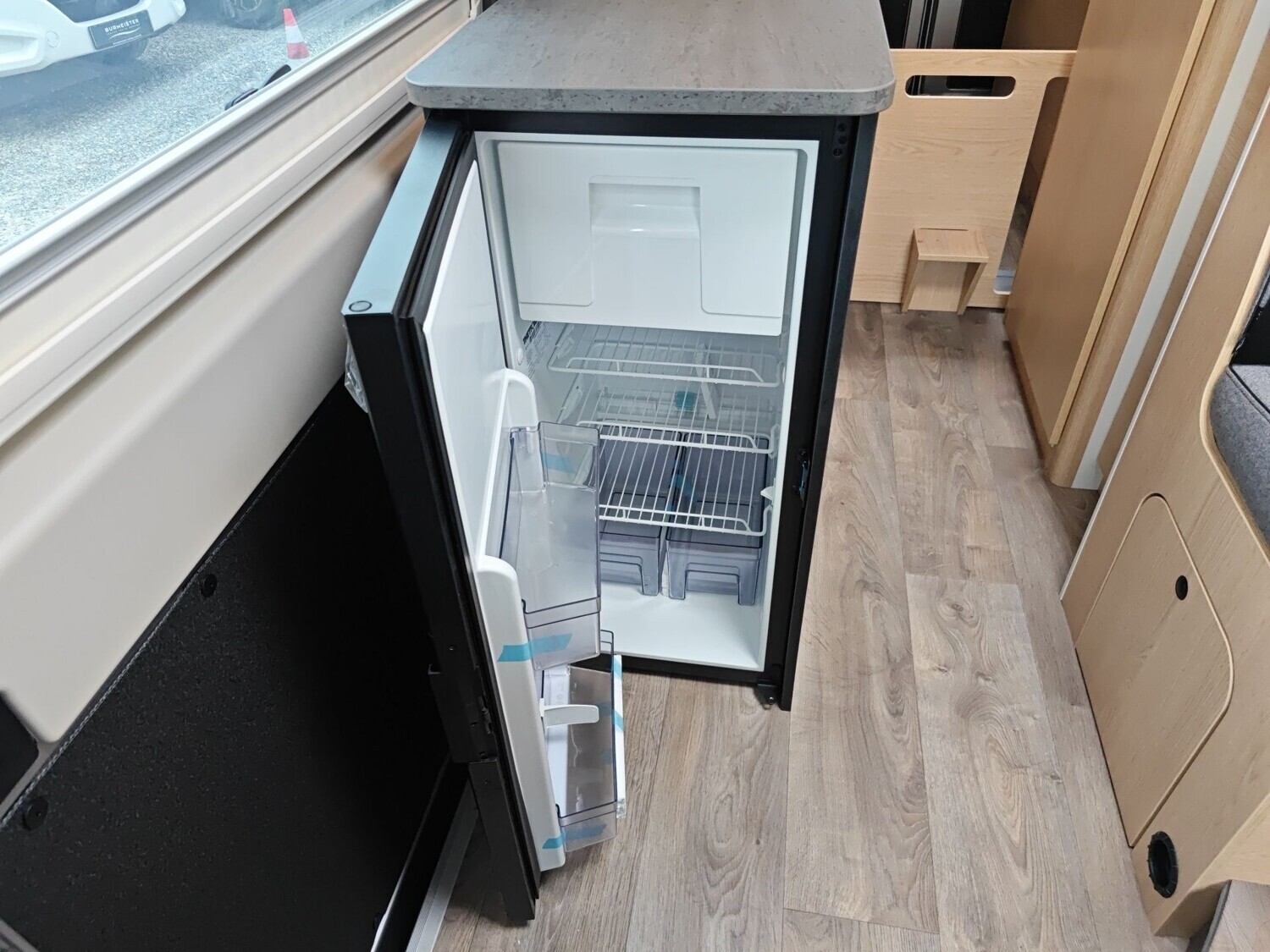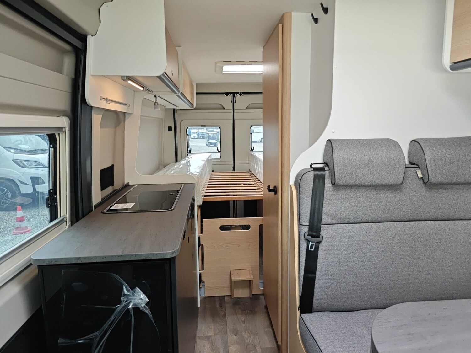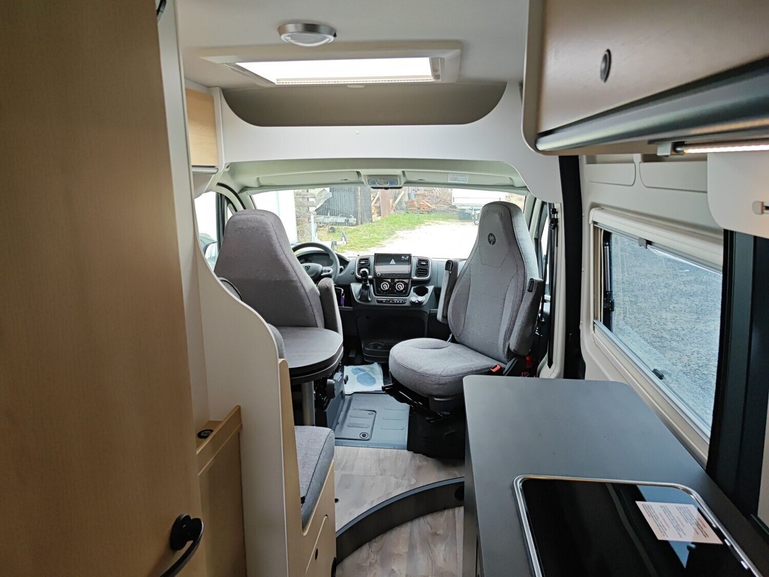• Basic Paket (Panoramadachhaube 70 x 50 cm, Duschausstattung, Fenster im Bad, Kleiderstange in der Nasszelle, Breite Einstiegsstufe, Drehplatte für Tischerweiterung an der Sitzgruppe)