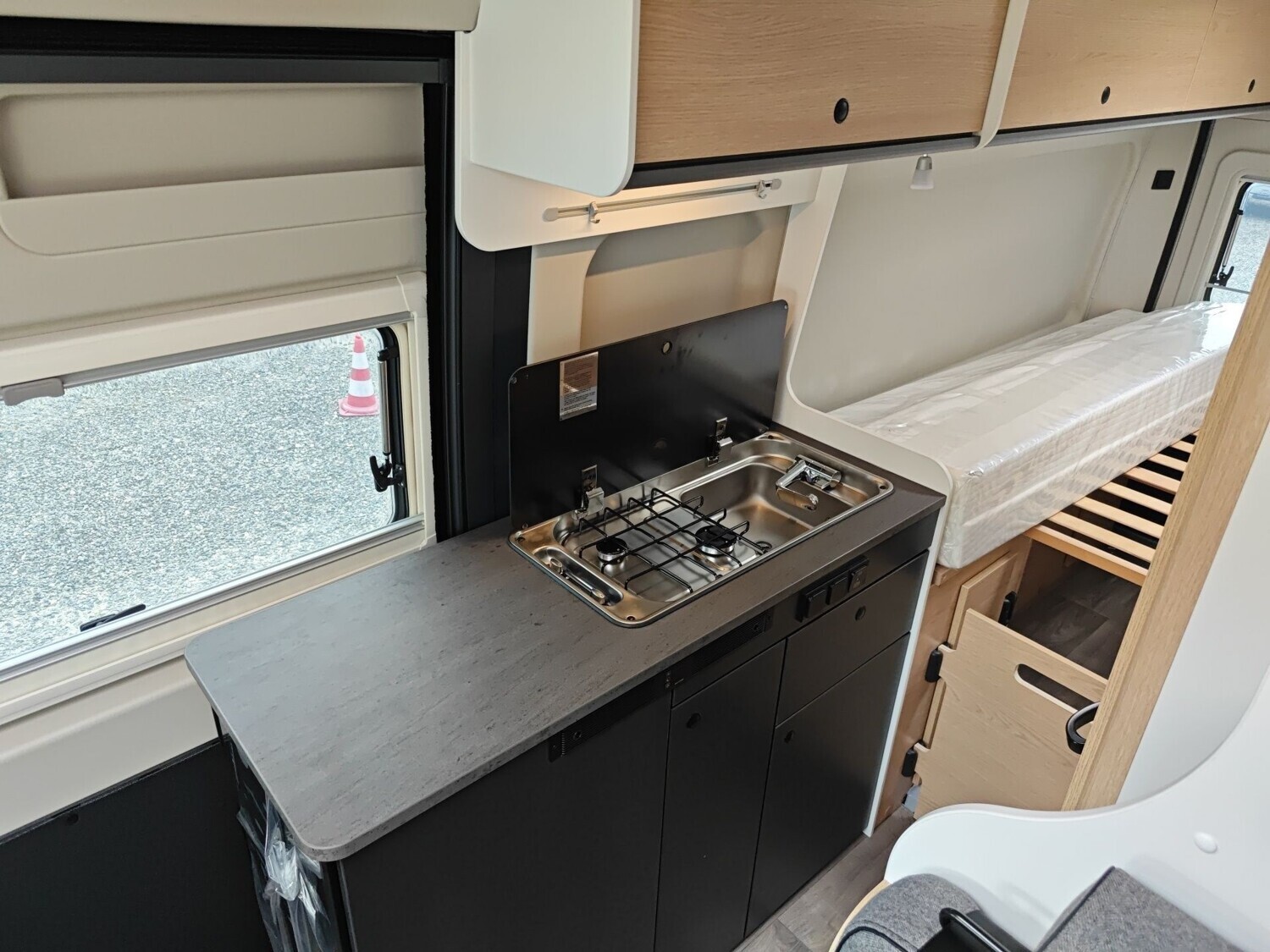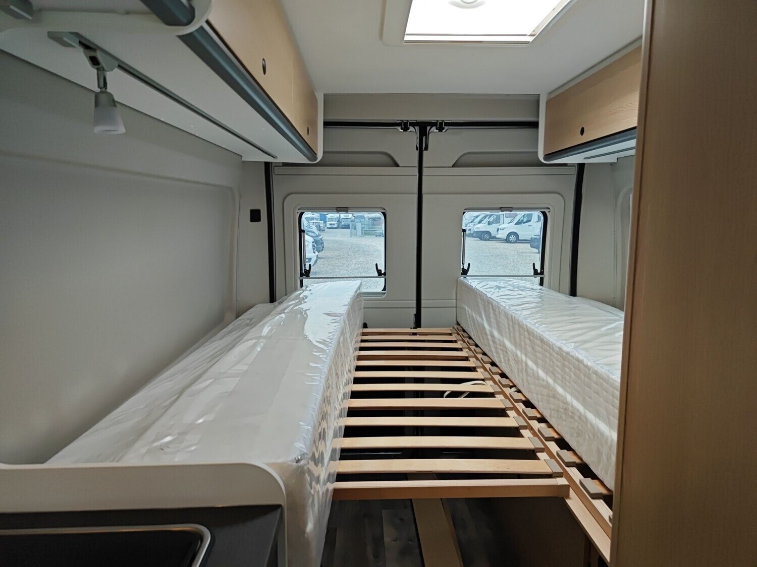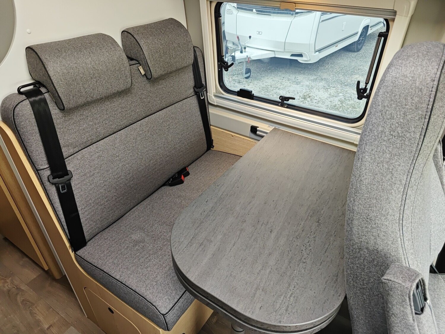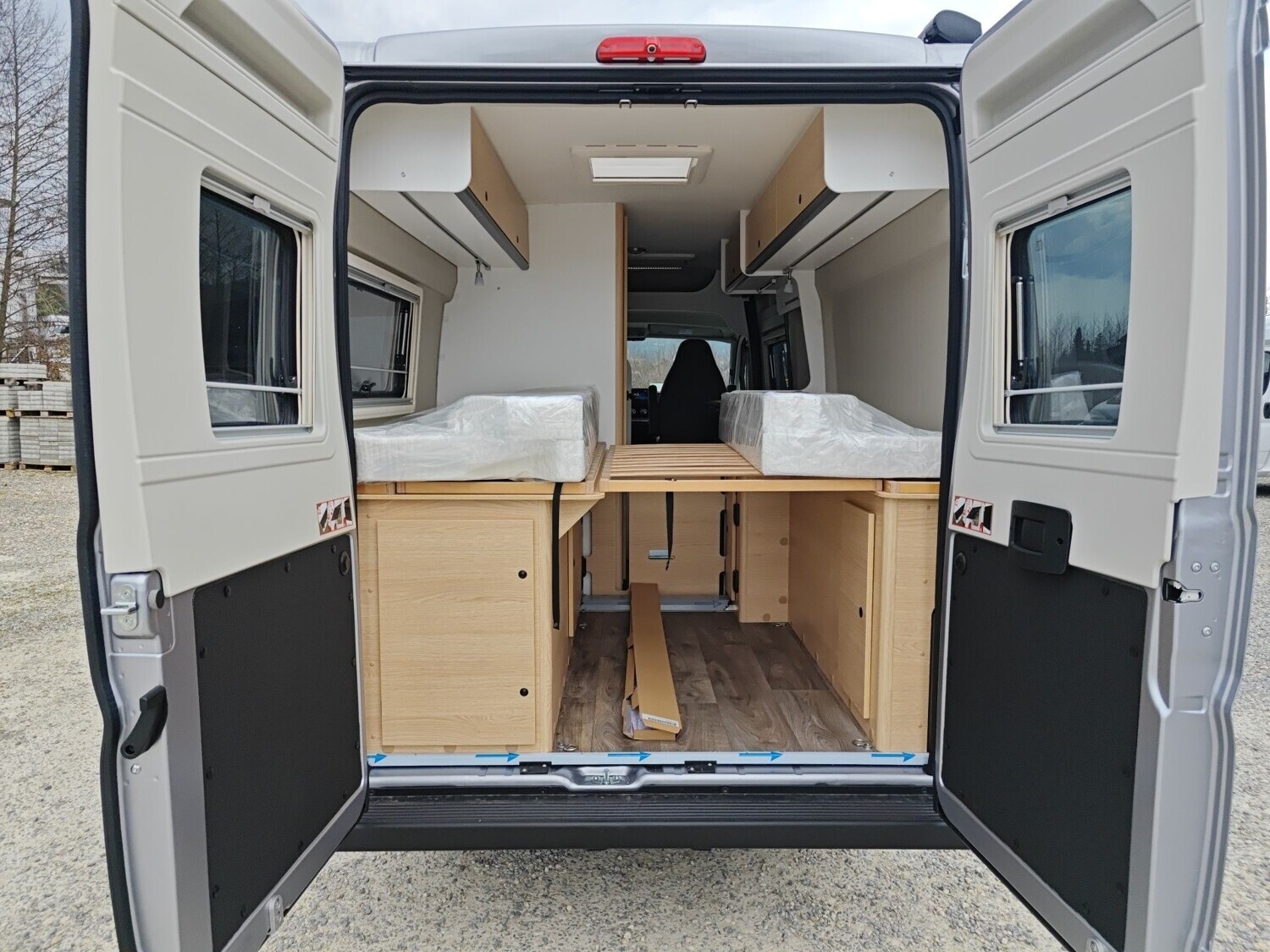 • Basic Paket (Panoramadachhaube 70 x 50 cm, Duschausstattung, Fenster im Bad, Kleiderstange in der Nasszelle, Breite Einstiegsstufe, Drehplatte für Tischerweiterung an der Sitzgruppe)
