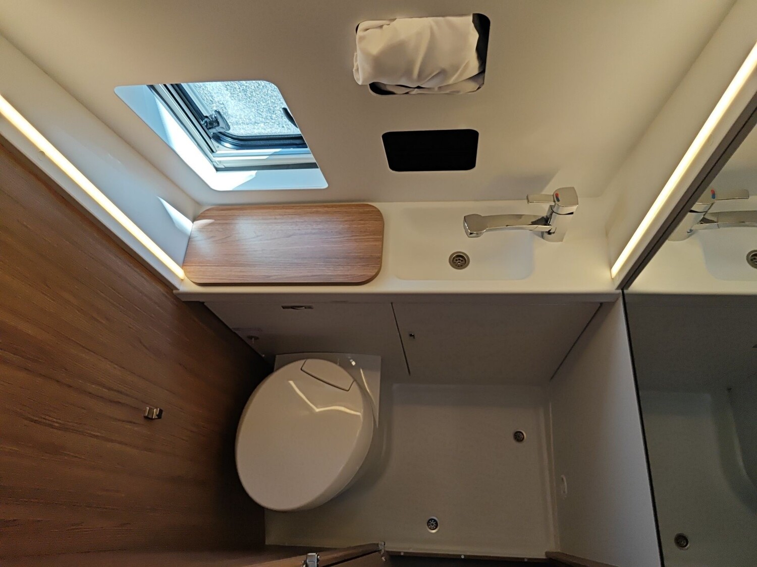 • Regenrinne über der Schiebetür mit LED (dimmbar)