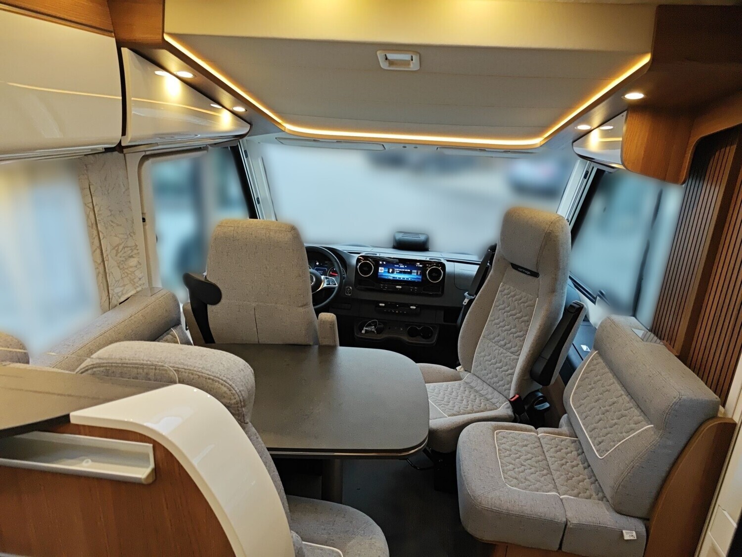 • Chassis-Plus-Paket Mercedes (Motorvariante 170 PS / 125 kW, Euro VI E (nur i.V.m. Automatikgetriebe), 16 Zoll Alufelgen (schwarz) mit Ganzjahresbereifung, Vollautomatische Klimaanlage THERMOTRONIC)